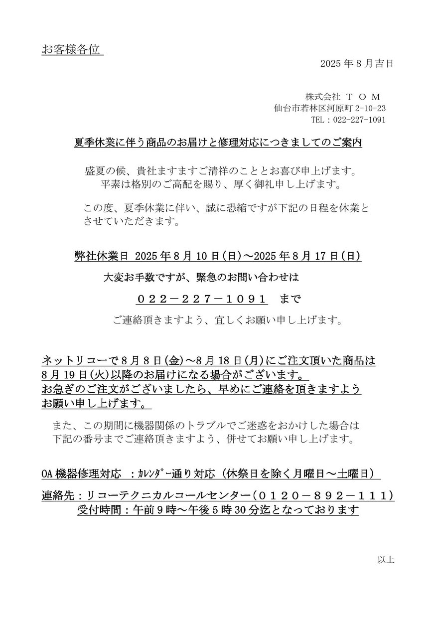 株式会社 TOM (旧:株式会社東北オフィスマシン)